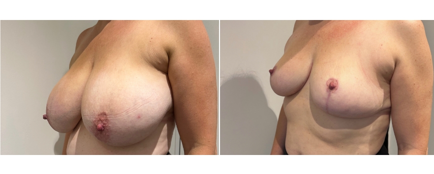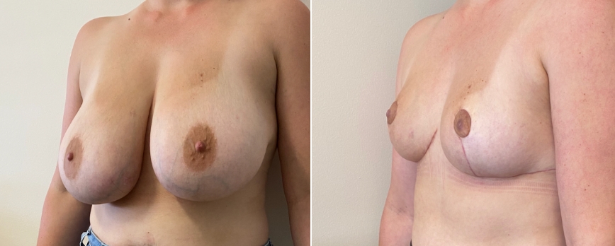 Our breast reduction (reduction mammaplasty) before and after images are published with the consent of our patients. Individual results, risks and recovery will vary between patients, and specific surgical outcomes are not guaranteed. For more information about breast reduction, risks and recovery, please visit our breast reduction procedure page.
